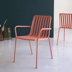 Associé aux chaises Gaby orange autour de la table du séjour ou de la cuisine… réchauffé d’un coussin ou d’un plaid au salon ou dans la véranda… le fauteuil en métal Gaby orange réveille votre intérieur d’une touche tonique ! Réalisé en métal, il dévoile aussi tout son potentiel sur la terrasse ou dans le jardin. Bref, il égaye votre quotidien à l’intérieur comme à l’extérieur !