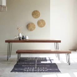 Le banc en palissandre massif 135 Helga affiche sobriété de lignes et esprit atelier. Vous aimerez aussi le bois veiné très visuel et l’originalité des pieds fins en métal. On le marie à la table en palissandre Helga pour composer un coin repas dans l’air du temps. On peut également lui confier une autre vocation comme console dans le salon ou la véranda, banc de vestiaire dans l’entrée ou le couloir, bout de lit dans la chambre.