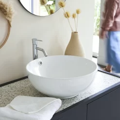 Précieux, élégant et moderne notre vasque en céramique Hilde apportera à votre salle de bain une touche sophistiquée grâce à son design précieux. Son charme réside dans sa teinte blanche et sa forme ronde élégante. Vous serez charmés par l’éclat de la céramique qui donnera à votre salle de bain une touche chic. Grâce à son style raffiné, notre vasque s’adaptera facilement à votre salle de bain quelque soit le style de votre pièce.
