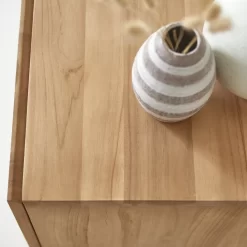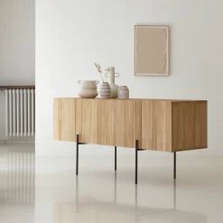 Le buffet haut en teck massif Honorine conjugue avec talent la fonctionnalité d’un meuble à l’esprit atelier et la sobriété de lignes minimalistes. On aime la blondeur du bois, la belle capacité de rangement et l’ingéniosité de la conception : au gré des envies, il devient buffet bas ou buffet haut… il suffit de retourner le piétement et le tour est joué !