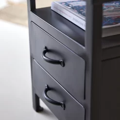 Et si on s’amusait à donner à la chambre d’enfant un petit air de loft New-Yorkais avec le chevet Industriel en métal ? Les petits rêveront des usines d’autrefois qu’on voit dans certains dessins animés ou s’imagineront explorer une caserne de pompiers… les plus grands aimeront le côté vintage de son design factory. Avec ses deux tiroirs bien pratiques pour cacher les petits trésors et son très beau plateau en manguier brut sur lequel poser doudou, un verre d’eau ou son téléphone… il accompagne la nuit de chacun !