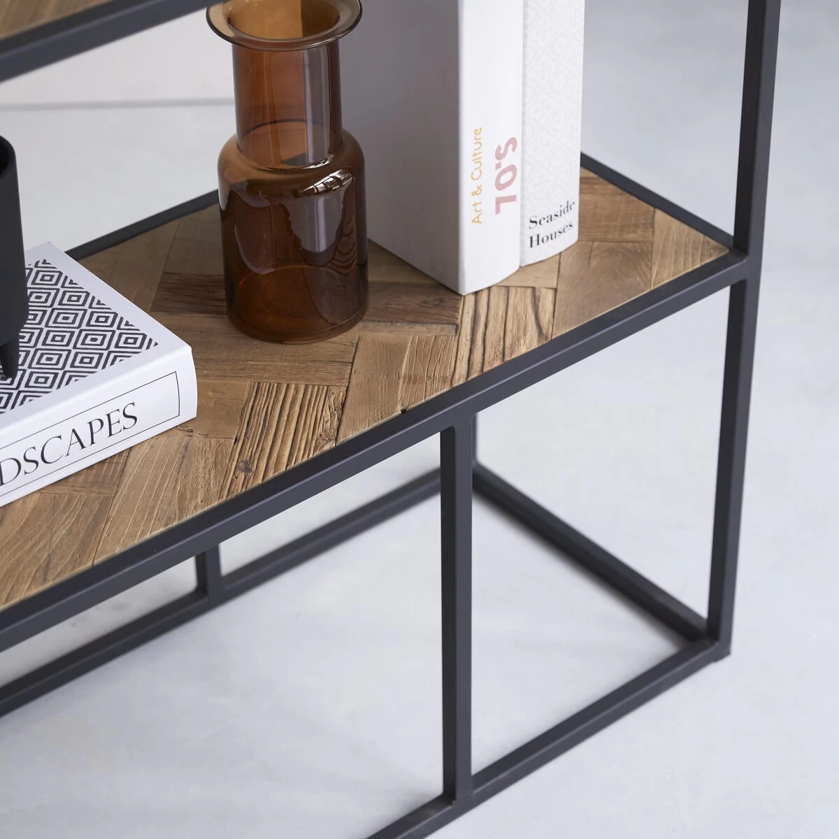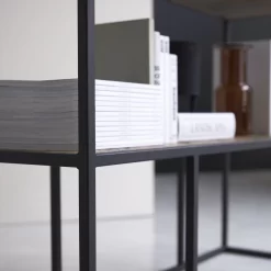 Directement inspirée des meubles fonctionnels des ateliers d’usine, l’étagère en métal et orme massif Isak affiche un design industriel, plus que jamais au-devant de la scène dans les intérieurs d’aujourd’hui. Le plateau en orme bénéficie d’une finition antique du plus bel effet et se marie avec réussite à la structure en métal noir. Cette étagère se fait bibliothèque au salon, reçoit des éléments de déco au séjour ou dans la chambre et sait être très fonctionnelle au bureau en accueillant dossiers et autres indispensables des moments studieux. A imaginer aussi en séparation de pièce ou d’espace…