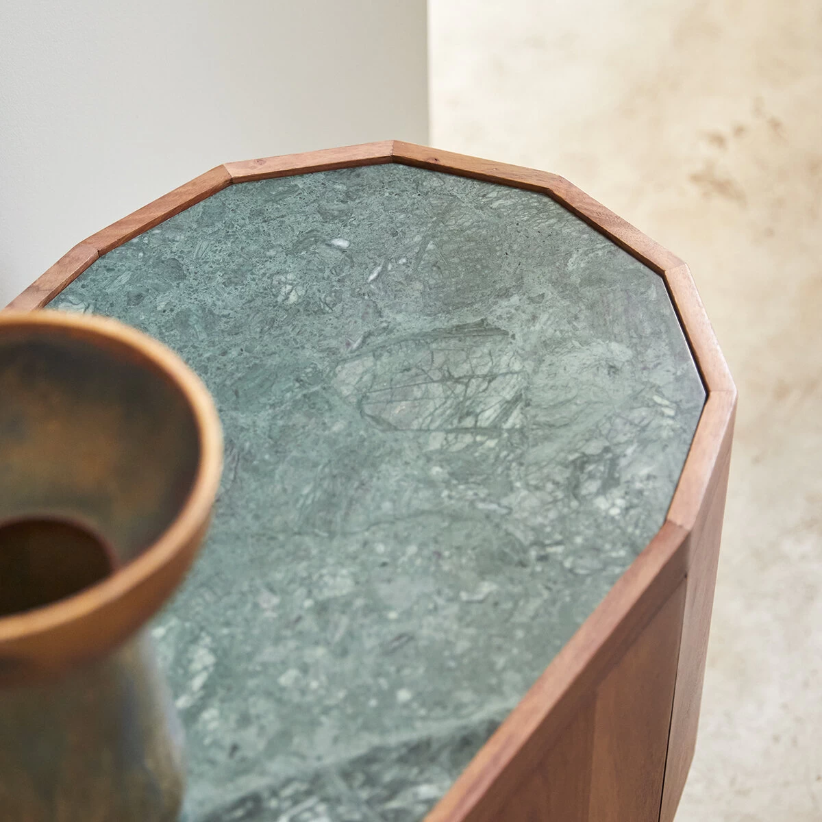 Le meuble TV en palissandre massif et marbre Jade a de tels atouts qu’on serait tenté de le laisser seul dans la pièce pour que chacun puisse l’admirer à sa guise : superbe alliage de deux matériaux nobles – le marbre qui fait son grand retour et le palissandre tellement visuel -, architecture jonglant entre ligne et courbe, large capacité de rangement… Au gré de votre envie ou de vos besoins, vous l’utiliserez pour accueillir la télé et autres appareils multi-média ou en ferez un buffet aux courbes étonnantes. Au salon, au séjour, dans la chambre ou une entrée spacieuse… il trouve sa place partout dans la maison !