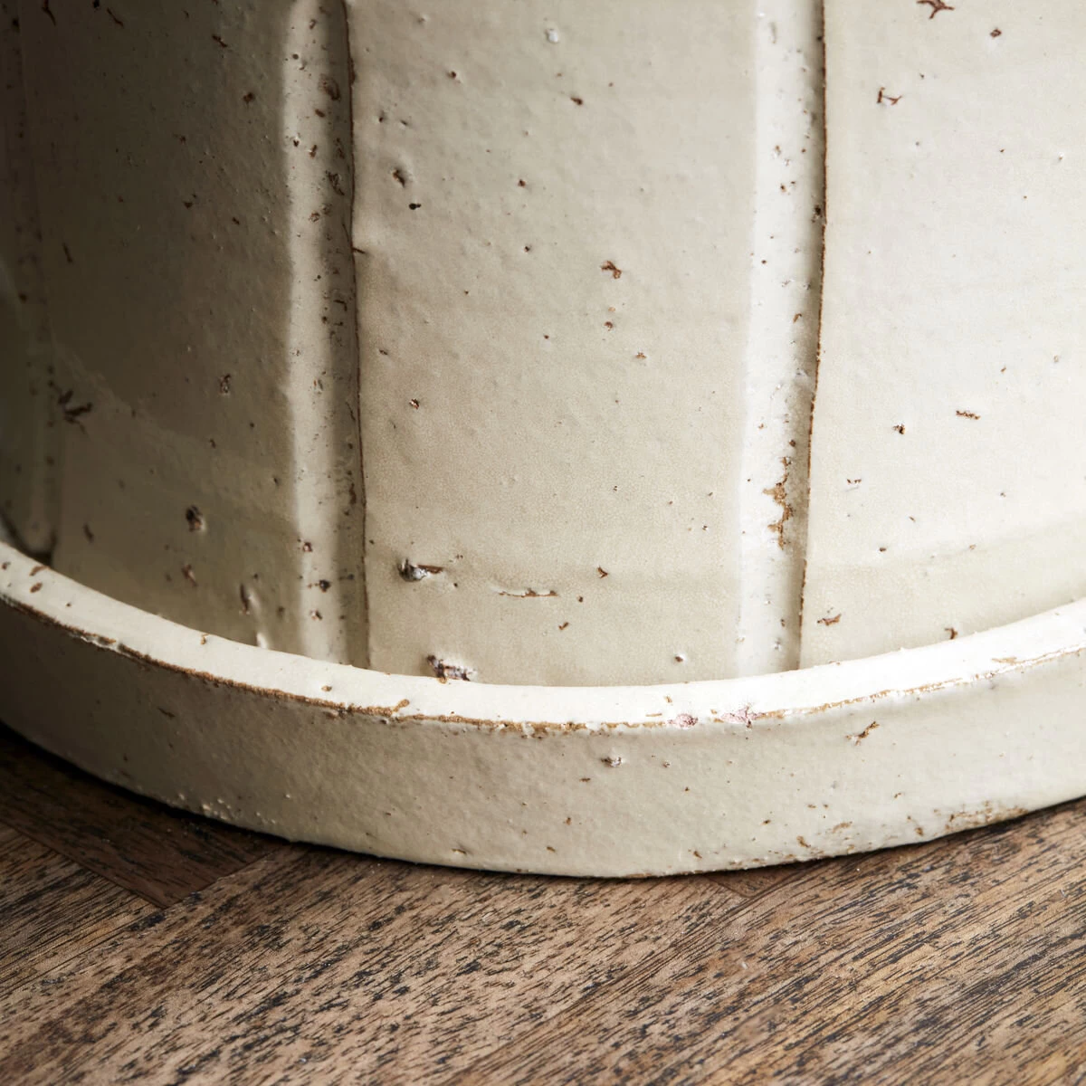 Travaillé dans un grès du plus bel effet, il affiche un charme authentique et intemporel. On aime son fini moucheté et légèrement irrégulier et la bordure cannelée.