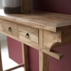 Idéale en vide poche dans l’entrée, elle se fait écritoire dans le coin bureau ou la chambre. Au salon, elle accueille des objets de déco et compose au séjour, une élégante desserte. En un mot comme en mille, la console en teck Junie trouve sa place partout dans la maison.