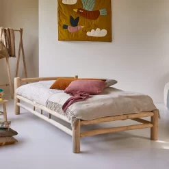 On part à l’assaut de la nuit avec le lit en teck massif Kalif : son bois flotté est idéal pour rêver de grandes aventures ou profiter des matins sans école pour jouer à chat perché (mais est-ce bien autorisé par Maman Papa ?). Les rêves créent les plus jolis souvenirs… et ça, ça compte drôlement pour bien grandir !