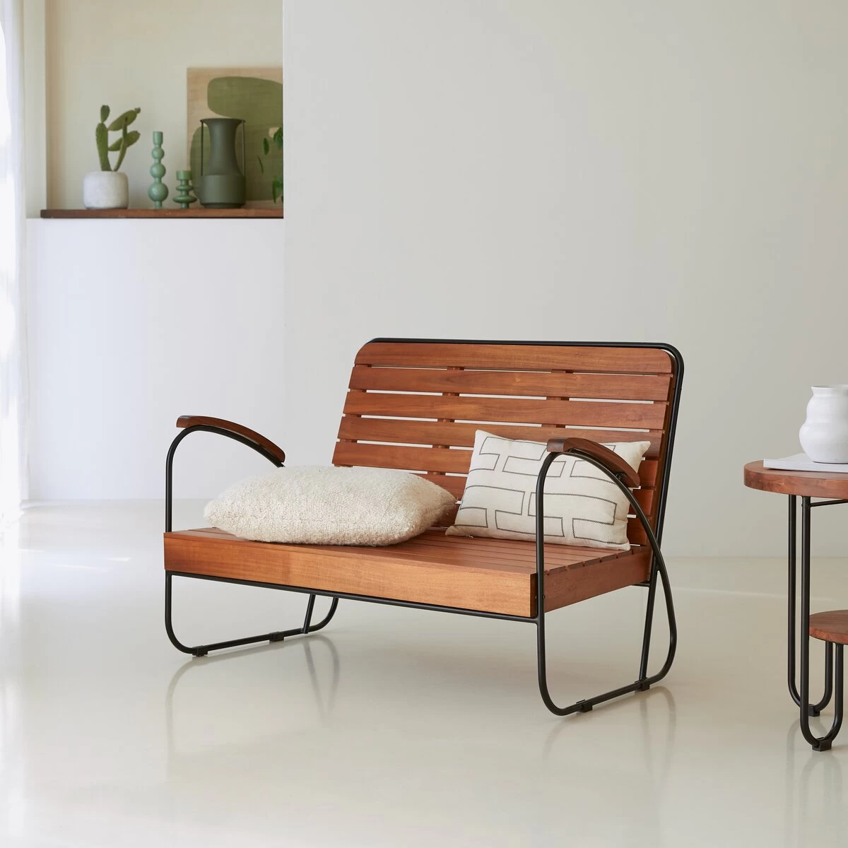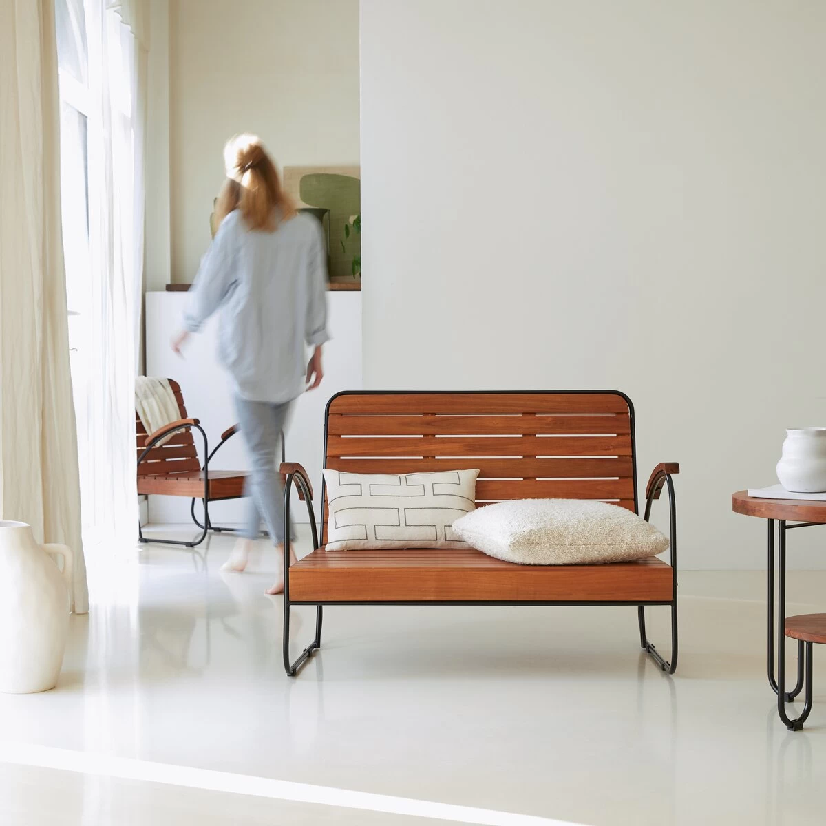 Idéal au salon, dans la cuisine ou sur la terrasse au retour des beaux jours, le banc en acacia massif Key Wood conjugue inspiration industrielle et tendance In and Out (les meubles s’installent à l’intérieur comme à l’extérieur de la maison !). On aime la structure métal en parfaite harmonie avec le bois massif latté et les lignes arrondies. Travaillé dans un acacia certifié FSC®, l’assurance qu’il provient de forêts durablement gérées, il compose un salon plein de personnalité associé à un ou deux fauteuils en acacia massif Key Wood, et à la table en acacia massif Key Wood, petit ou grand modèle. Vous pouvez aussi choisir de vous offrir le salon complet en acacia massif Key Wood.