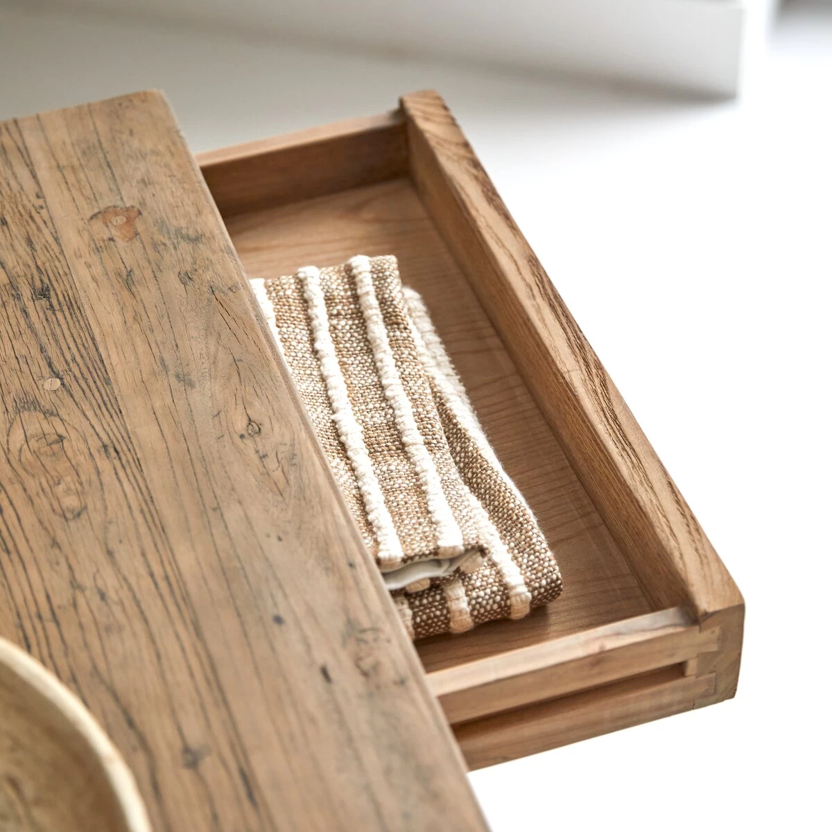 La console en pin et orme recyclé Kim affiche un réel supplément d’âme, qualité qu’on retrouve sur les meubles de notre gamme à l’esprit naturel.