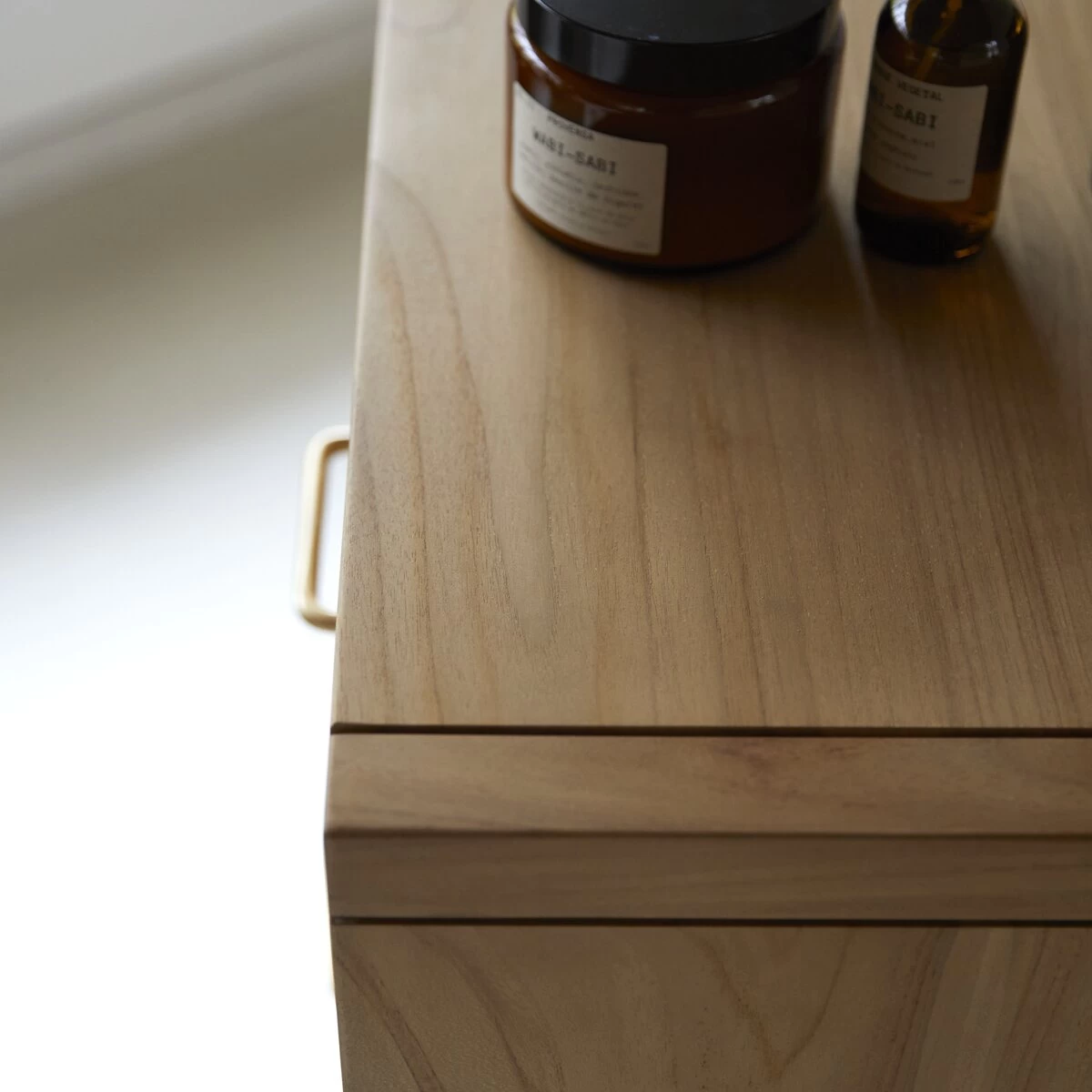Découvrez notre commode Kort en bois de teck massif brut. Meuble de rangement idéal, elle se compose de 4 tiroirs sur rails en métal dans lesquels vous pourrez ranger votre linge de maison ou vos documents. Elle trouvera facilement sa place dans la chambre comme au salon.