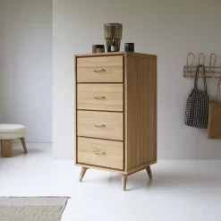 Inspirée par le design scandinave, notre commode apportera une touche vintage à la fois naturelle et chic dans votre pièce. Vous aimerez ses pieds obliques en laiton et bois qui donnent à ce meuble son caractère original. Vous apprécierez également la qualité de ses finitions et l’élégance du bois brut.