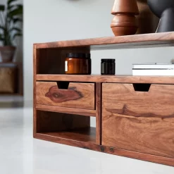 Pour une installation plus complète, ce meuble TV peut être additionné du module Cube trio. La collection modulable en palissandre massif Kwarto a été imaginée pour toutes les pièces de la maison. Ces cubes identiques s’adaptent à vos envies : table basse, meuble tv, meubles de rangements, ils se modulent en fonction de vos besoins.