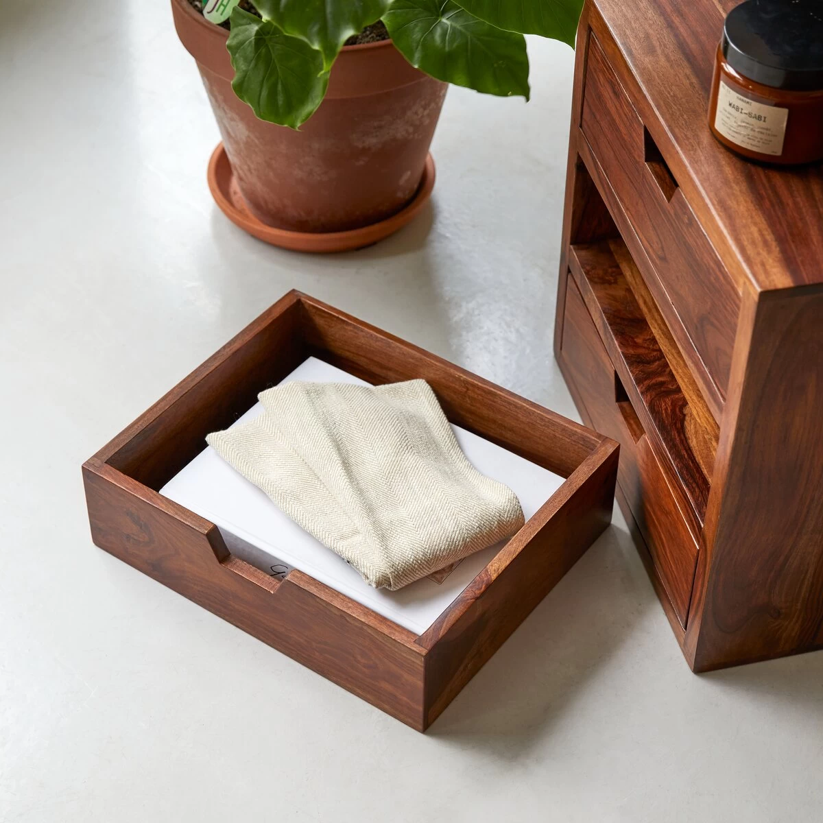 Le cube en palissandre de la collection Kwarto est un module de rangement complémentaire pour le meuble TV Kwarto. Pratique, avec ses 3 tiroirs qui accueilleront discrètement vos télécommandes. La collection modulable en palissandre massif Kwarto a été imaginée pour toutes les pièces de la maison. Ces cubes identiques s’adaptent à vos envies : table basse, meuble tv, meubles de salle de bain, ils se modulent en fonction de vos besoins.