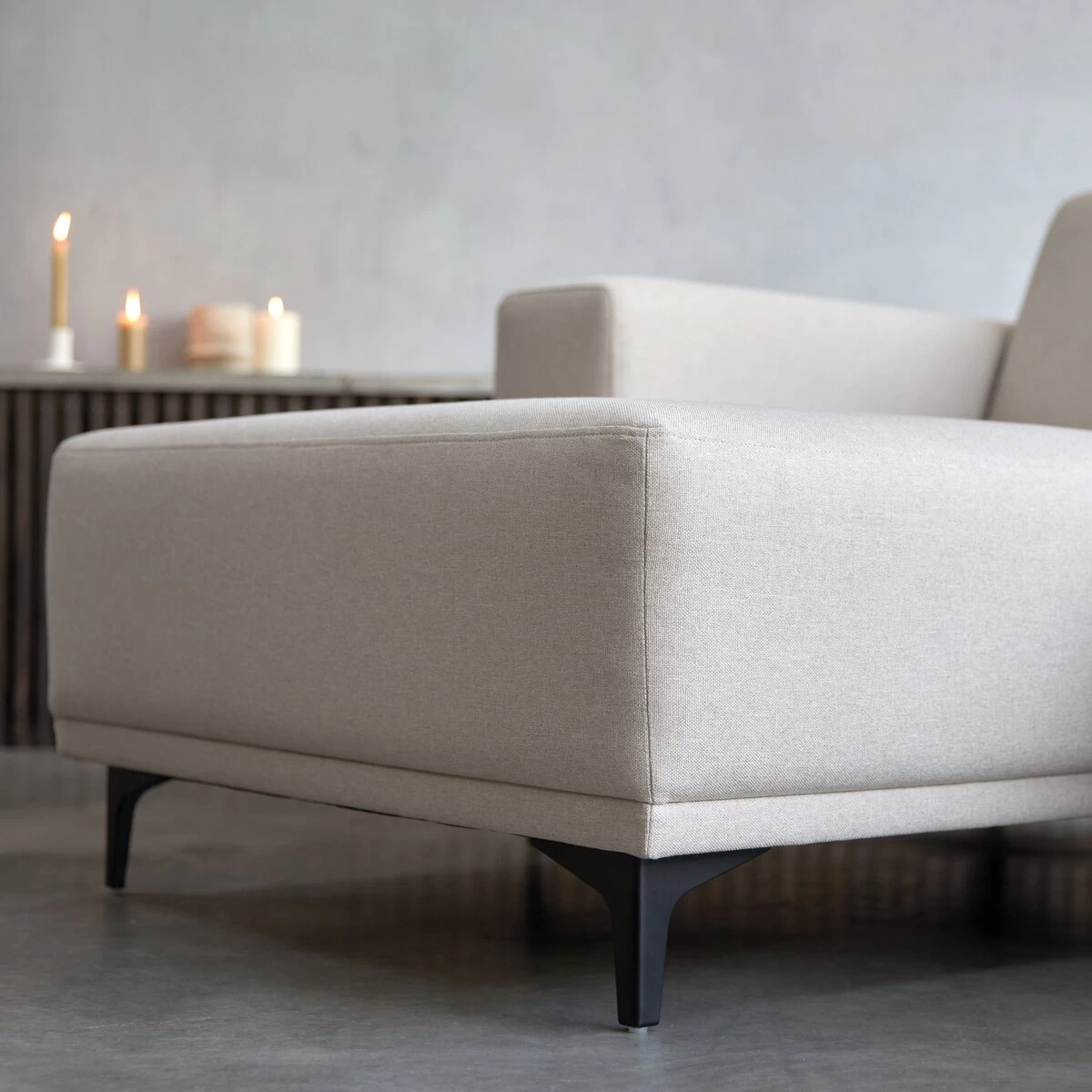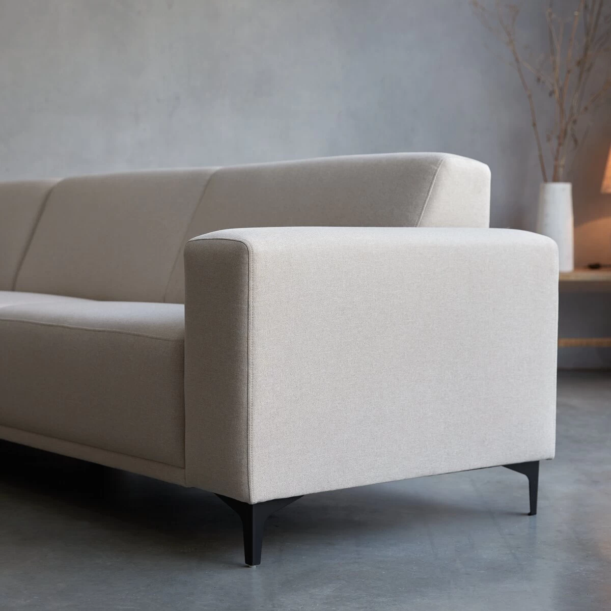 Le canapé d’angle Lars existe aussi en angle droit. Il vous est également proposé avec une longue méridienne à gauche et à droite. Découvrez aussi notre canapé en tissu écru Lars et le repose-pied assorti qui devient assise au besoin.