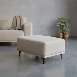 Le repose-pieds en tissu écru Lars peut être combiné avec les canapés d’angle et le canapé droit de la même gamme