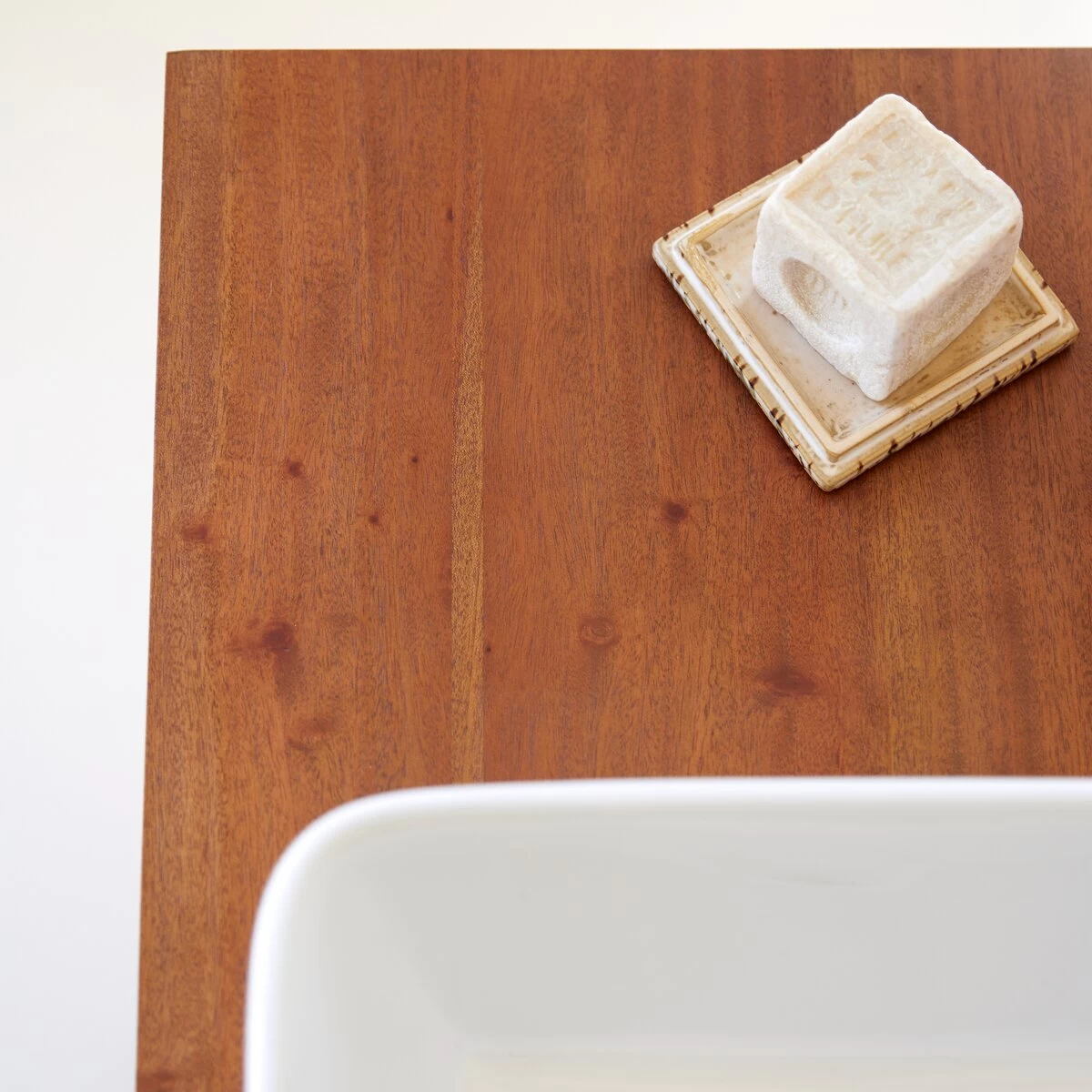 Conçu pour recevoir une vasque, il offre un bel espace de rangement et la facilité d’entretien d’un bois qui ne craint pas l’humidité !