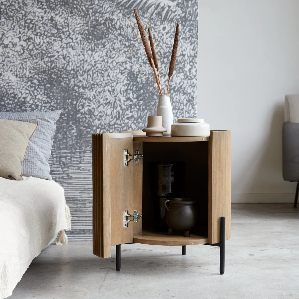 Le chevet en mindi verni Lou fait souffler un petit air “art déco” dans votre chambre ! On aime son design “années folles” et sa belle capacité de rangement, très pratique pour garder à portée de main livres, téléphone, magazines et recevoir lampe ou radio-réveil.