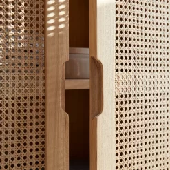 L’atout charme du séjour ou du salon : l’armoire en orme massif et cannage Luis.