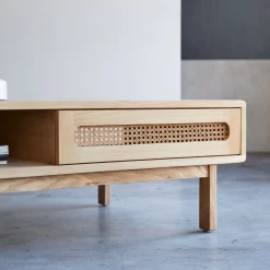 La table basse en orme massif et cannage Luis : naturelle, intemporelle, design … avec de subtils détails de cannage qui font toute la différence !