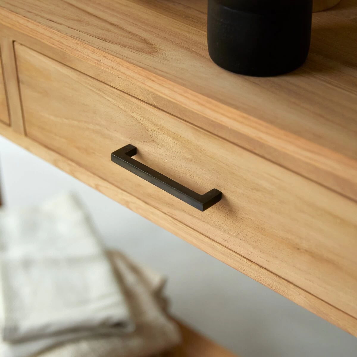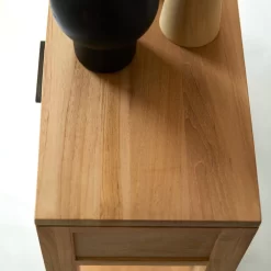 Habillez votre hall grâce à notre console Maë en teck massif certifié FSC® provenant d’Indonésie. Fonctionelle, elle est équipée de 2 tiroirs et d’un plateau inférieur, des espaces de rangement qui vous permettront de disposer votre nécessaire tel que clés ou lunettes de soleil … Son style minimaliste caractérisé par des lignes épurées et sobres apportera une touche d’élégance à votre intérieur. Sa teinte claire naturelle procurera à votre pièce une touche d’authenticité et de chaleur.