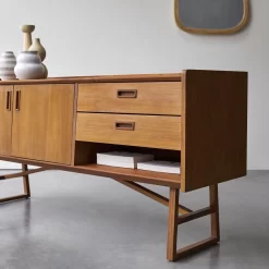 Le meuble TV Marcus joue l’accord parfait entre un teck naturel aux subtiles nuances dorées et un design d’inspiration scandinave !