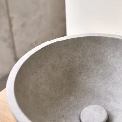 N’hésitez pas à découvrir aussi nos autres vasques à poser en béton : version rectangulaire Iris – version carrée Thaïs et version ronde Gina.