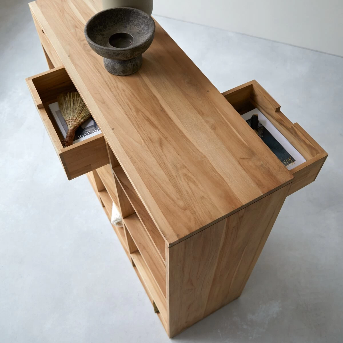 Si vous êtes sensible au charme intemporel de notre console en teck massif Miho, nous vous proposons de découvrir tous les meubles de notre gamme Esprit Naturel. Ils sont parfaits pour un intérieur tout en douceur.