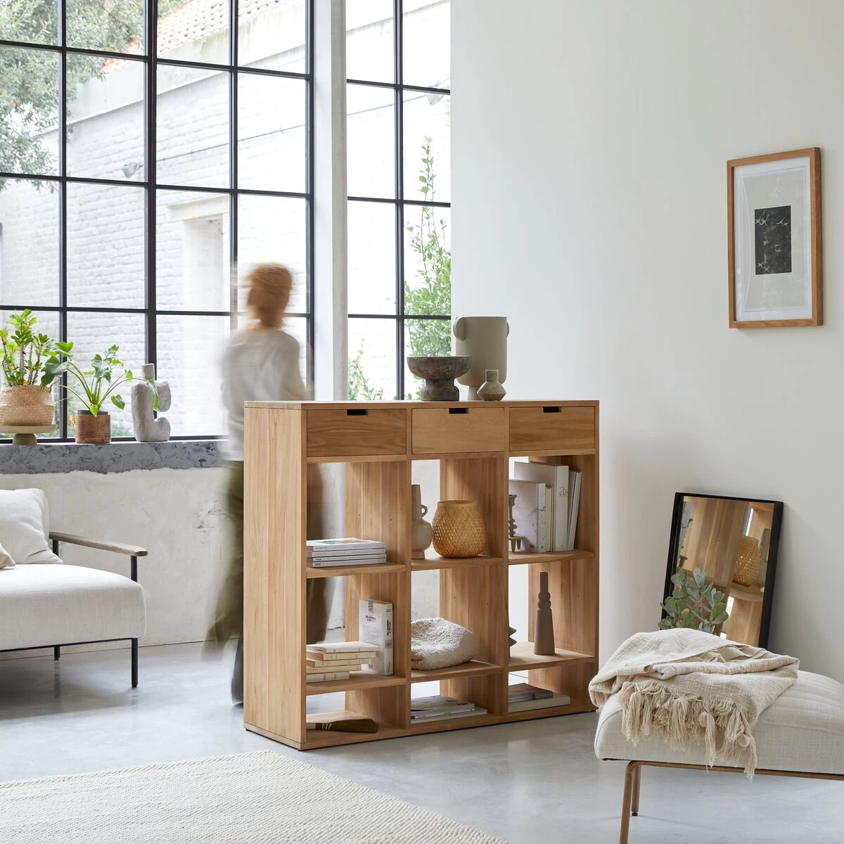 La console en teck massif Miho est idéale pour mettre en beauté vos plus jolis objets, jouer les bibliothèques basses ou servir de séparation entre deux espaces. Travaillée dans un bois certifié FSC®, ce qui vous garantit qu’il provient de forêts durablement gérées, cette console permet de nombreuses interprétations : au gré de vos envies, elle reçoit des éléments de déco, des plantes, des livres, des magazines, de la vaisselle… rien ne lui fait peur ! A noter ses tiroirs bien pratiques pour masquer ce qu’on ne veut pas voir traîner dans la pièce et sa blondeur apaisante, parfaite pour vous composer une atmosphère zen et design.