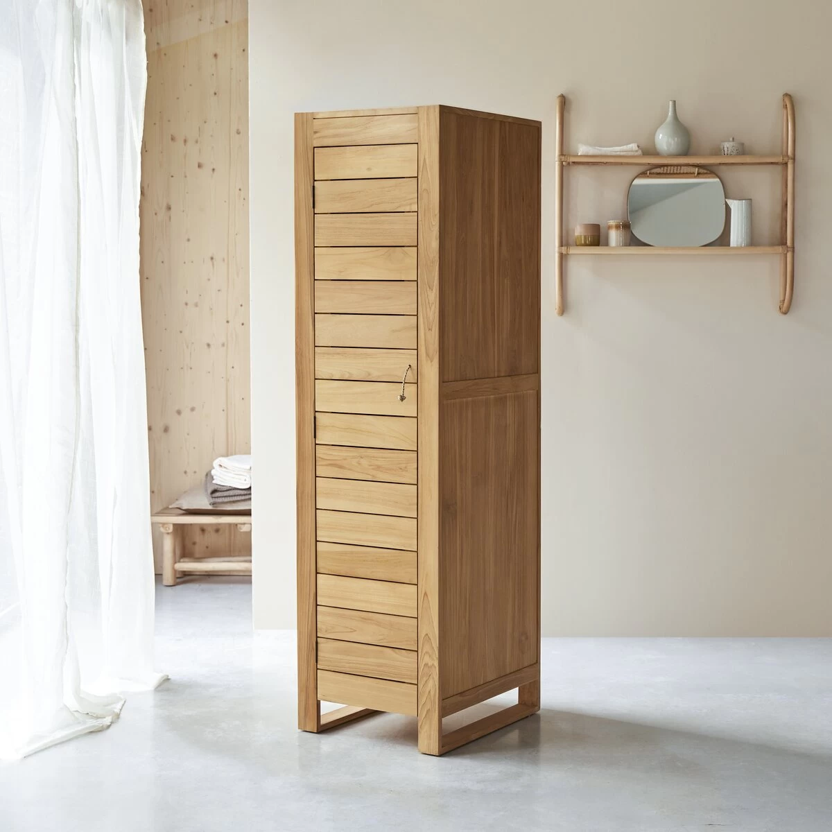 Cette colonne fait partie de la collection en teck massif MINIMALYS, une ligne aux douces tonalités mordorées, travaillée dans un teck latté naturel. Retrouvez l’authentique sobriété de cette gamme sur des meubles fonctionnels, design et durables.