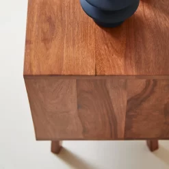 Le meuble TV en palissandre massif de 150 cm sera idéal pour aménager votre salon. Il est muni de 2 portes ouvrant chacune sur un espace de rangement et 2 niches ouvertes.