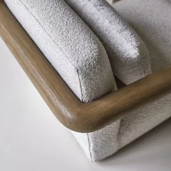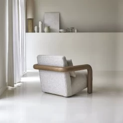La personnalité singulière du fauteuil Nina en mindi massif et tissu bouclé confère beaucoup de charme et un supplément d’âme à votre salon. Facile à associer à d’autres meubles, il trouve aussi tout naturellement sa place dans la chambre, une entrée spacieuse ou le bureau.