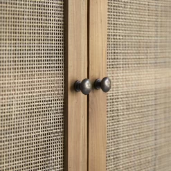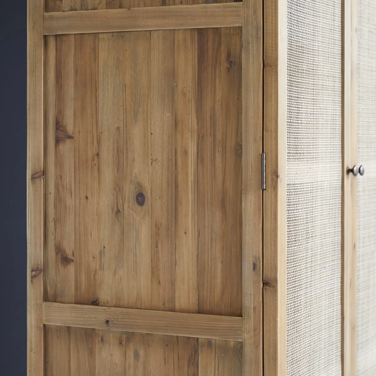 L’armoire en pin et cannage rotin Ninon. Le rotin a fait son grand retour dans les intérieurs contemporains ! Qu’on l’aime en pièce complète ou qu’on le préfère associé à d’autres matières, il ajoute une touche d’authenticité et un certain charme vintage aux intérieurs d’aujourd’hui. On apprécie beaucoup l’accord parfait des deux matériaux, la belle capacité de rangement pour un faible encombrement au sol et la légèreté de la ligne.