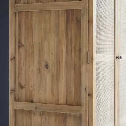 Idéale dans la chambre pour ranger les vêtements ou le linge de maison, l’armoire en pin et rotin Ninon trouve aussi très facilement sa place dans toutes les autres pièces de la maison, du séjour à l’entrée pour ranger sacs, écharpes et autres accessoires par exemple…
