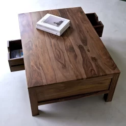 Les télécommandes et magazines ne seront plus un soucis, grâce aux 6 tiroirs disposés de chaque côté de cette table de salon.