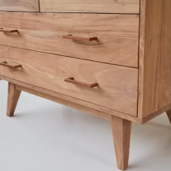 Offrir à son enfant une chambre au charme scandinave, c’est déjà le mener sur le chemin de l’autonomie : la commode en acacia massif Oslo en fait une évidente démonstration. Les tiroirs permettent d’organiser jouets, jeux ou vêtements en fonction de leurs dimensions. Les petits jouets seront rangés dans les deux tiroirs du haut… l’enfant pourra aussi y cacher ses trésors ; les jeux de société ou les BD trouveront leur place dans les larges tiroirs. Une chambre bien rangée, c’est du temps de rêve gagné !