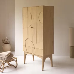 Une façade aux découpes à la fois graphiques et originales, des pieds aux lignes incurvées qui confirment l’allure contemporaine, une belle capacité de rangement : le très beau bahut Otho en mindi massif, a vraiment tout pour vous séduire ! Le piétement affiné allège visuellement l’ensemble, l’essence de bois claire permet de le marier à une déco scandinave ou naturelle… Idéal pour organiser toute la vaisselle et le linge de table dans le séjour ou la cuisine, ce bahut design trouve aussi naturellement sa place dans les autres pièces de la maison : dans la chambre, il reçoit le linge de lit, dans une entrée spacieuse, il se fait vestiaire pour ranger bonnets, chapeaux, chaussures, sacs…