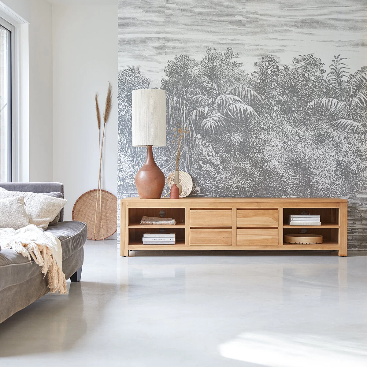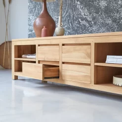 Long de 2 mètres, il convient parfaitement dans un grand salon ou séjour. Très pratique, le meuble TV en teck 200 Patio est composé de 4 niches et de 4 tiroirs.
