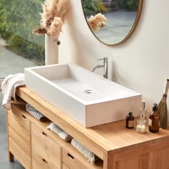 La vasque en terrazzo Pegase est facile à vivre au quotidien : très résistante, un simple coup d’éponge suffit à la rendre impeccable ! Elle est également disponible en 60 cm.
