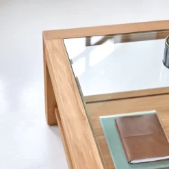 Notre table basse Perle est conçue en verre et en teck provenant d’Indonésie. Grâce à son plateau inférieur vous pourrez ranger tout votre nécessaire à portée de main. Son originalité réside dans cet élégant mariage du bois et du verre. Son élégance est caractérisée par des lignes sobres et sophistiquées, vous serez également séduits par sa teinte claire naturelle. Cette table basse sera idéale pour un intérieur à la fois contemporain et élégant.
