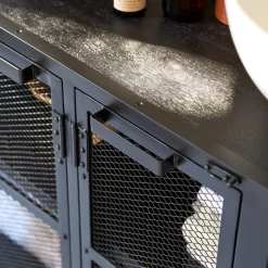 Le meuble de salle de bain en métal et manguier massif Romy offre tous les atouts d’un meuble inspiré des ateliers New Yorkais du début du siècle dernier : on aime l’alliance des matières, les portes grillagées comme l’étaient les garde-manger d’époque et la ligne très industrielle.