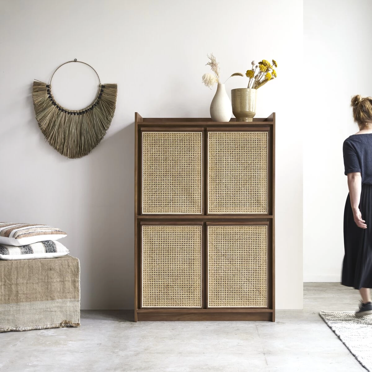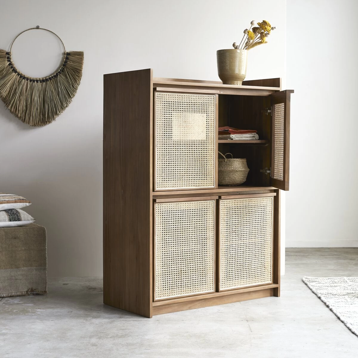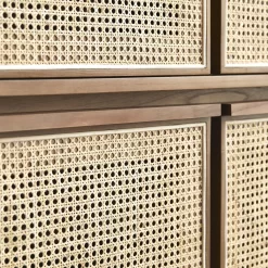Travaillée dans des matériaux de très belle qualité, l’armoire en teck massif Roots : un meuble plein de talent pour une chambre à coucher de caractère ! Le cannage est désormais très présent dans nos intérieurs… il est proposé ici dans une version contemporaine où sa blondeur raffinée est associée à l’intensité d’un bois foncé.