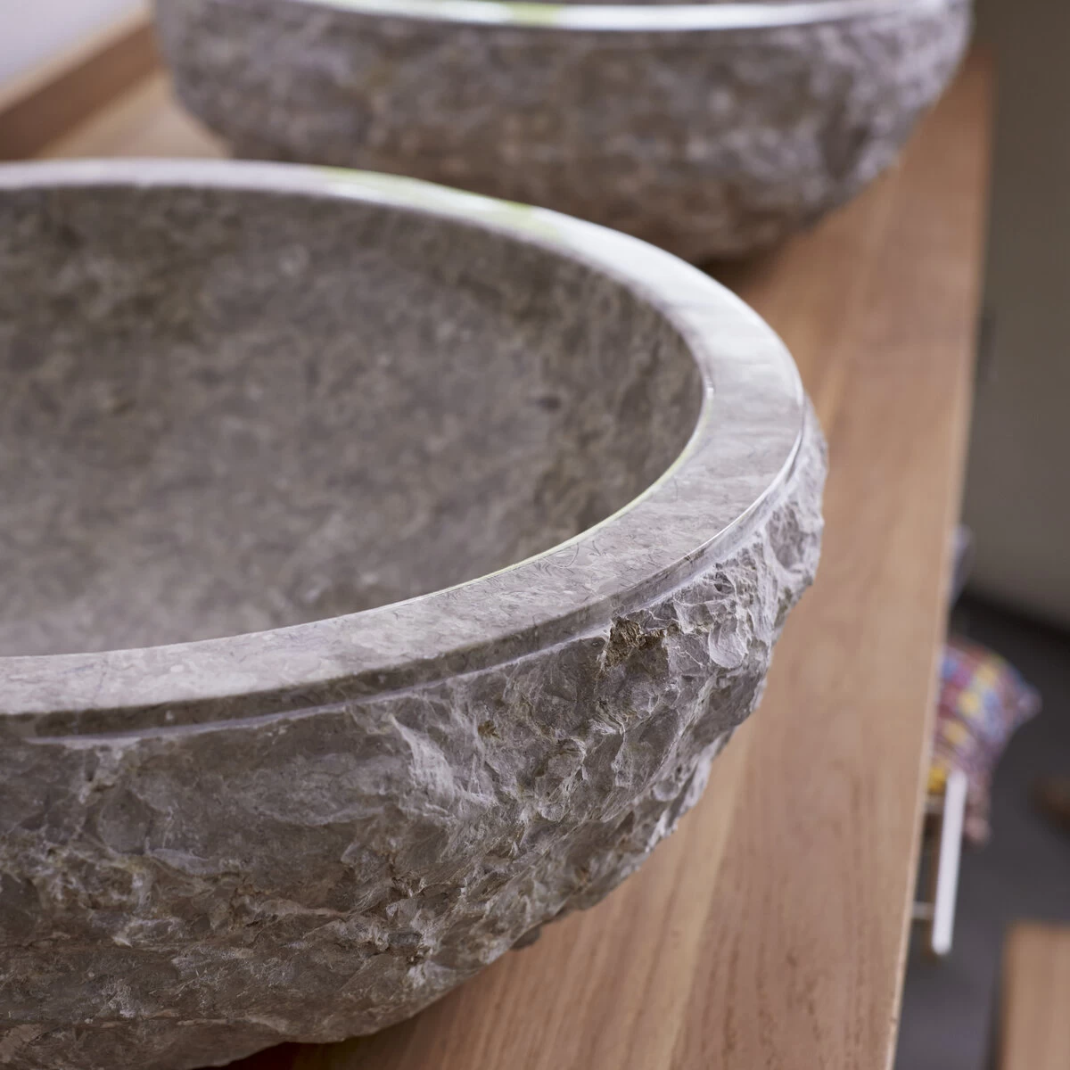 Très belle pièce artisanale au design original. Pièce en marbre véritable taillée dans la masse, finition extérieur brute, intérieur lisse.