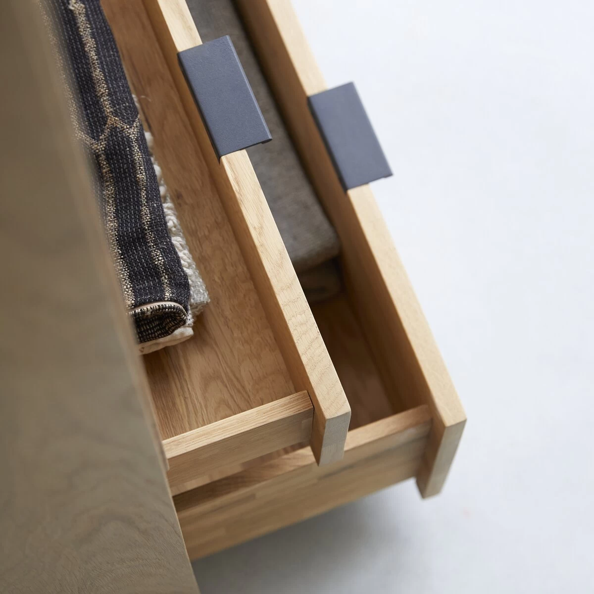 Le bahut en chêne Senson, un meuble premium qui conjugue élégance, modernité et originalité. On aime l’authenticité de son chêne massif certifié FSC® et le traitement huilé qui permet au bois d’exprimer toute la beauté de ses fibres tout en étant protégé des petits accidents de la vie.