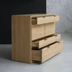 La commode en chêne Senson Oak… un meuble bien pratique, qui trouve sa place partout dans la maison ! On aime son design bloc allégé visuellement par un cadre tout en finesse, son chêne massif certifié FSC® et le traitement à l’huile qui le protège tout en laissant s’exprimer la beauté de ses fibres. Plutôt conçue pour accueillir des vêtements dans la chambre, elle est aussi parfaite pour compléter l’agencement de votre séjour ou de votre salon.