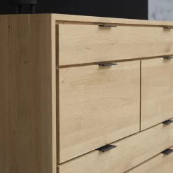 La commode en chêne Senson Oak se marie avec beaucoup de réussite aux autres meubles de la collection : le bahut, le meuble TV 120 cm ou plus long 180 cm, le buffet simple ou sa version double.