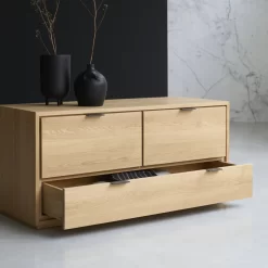 Le meuble TV en chêne Senson Oak permet de ranger avec élégance et modernité tous les éléments multimédia !