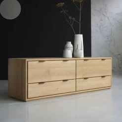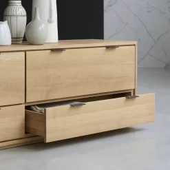 Elégant et très généreux en capacité de rangement, le meuble TV en chêne massif certifié FSC® Senson Oak permet d’organiser de manière esthétique tous les éléments multimédia, les magazines, les accessoires…