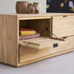 Le banc TV en teck massif Senson : au gré des envies, il se fait meuble multimédia ou buffet bas dans un esprit très design !