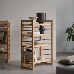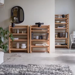 La bibliothèque en teck massif Sera (80 x 115 cm) requiert un minimum d’encombrement pour un maximum de rangement. 4 étagères reçoivent livres, déco, plantes et autres objets du quotidien. Parfaite au salon, elle trouve aussi tout naturellement sa place, version étagère, dans la chambre, le bureau ou la salle de bain.