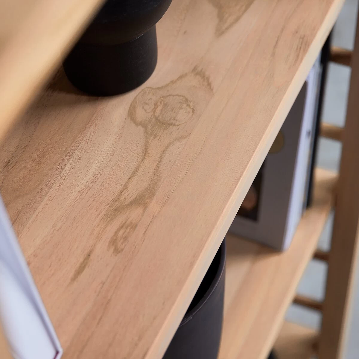 La bibliothèque en teck massif Sera (80 x 180 cm), une pièce essentielle de la déco au salon : on y range de nombreux livres, on peut aussi profiter de sa blondeur pour mettre en valeur des vases, des statuettes ou des plantes vertes. A toute heure de la journée, quel bonheur de se retrouver dans le coin bibliothèque, un endroit apaisant pour toute la famille.