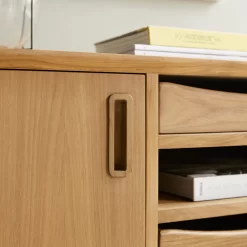 Un petit air fifties pour le bahut en teck 100 Simen… Il combine à la perfection l’esprit scandinave et ce petit côté vintage qui lui confère tout son charme. Travaillé dans un bois volontairement sans vernis, il offre toute la richesse d’une matière noble. Idéal dans le bureau, il trouve aussi tout naturellement sa place dans le séjour ou une entrée. Vraiment très pratiques, les différents compartiments qui permettent d’organiser le rangement des papiers !